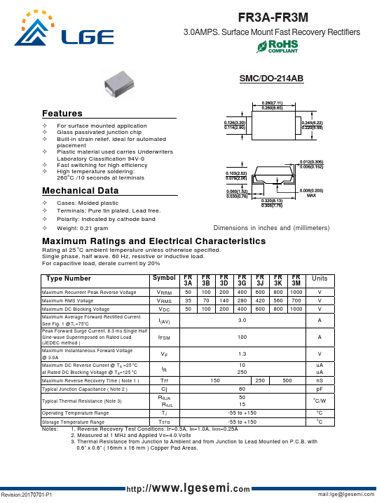 - 3.0AMPS. Surface Mount Fast Recovery Rectifiers