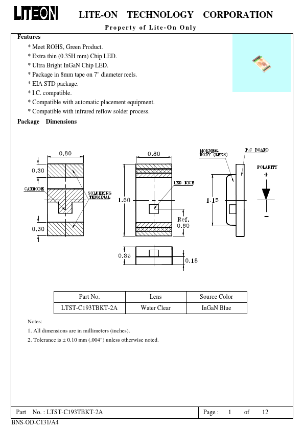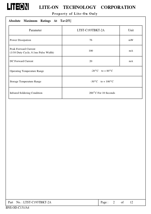 * Property of Lite-On OnlyLTST-C193TBKT-2A Applications