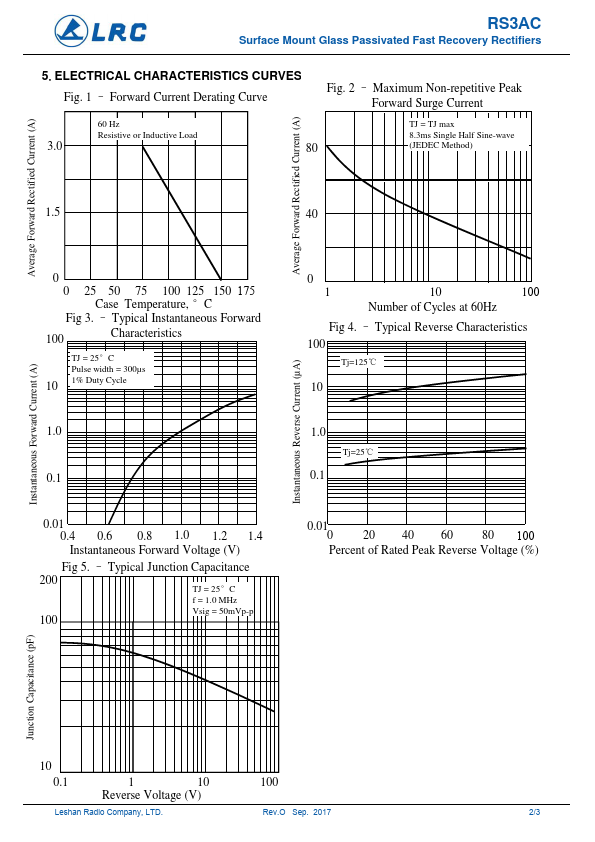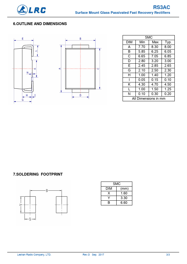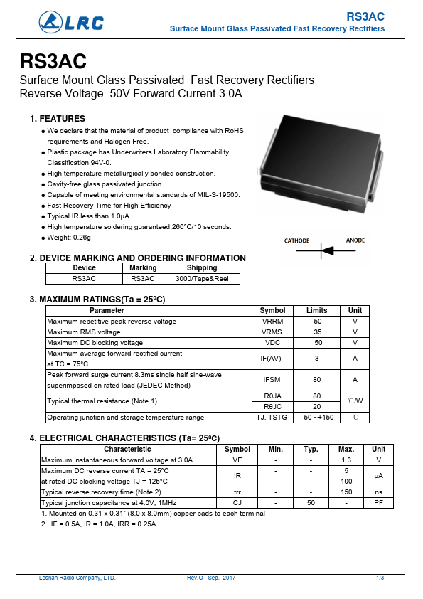 RS3AC Surface Mount Glass Passivated Fast Recovery Rectifiers RS3AC Surface Mount Glass Passivated Fast Recovery Rectifiers Reverse Voltage 50V Forwa.Features