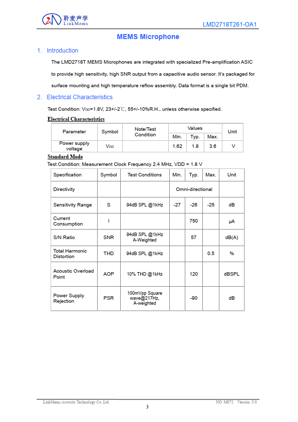 | Description | MEMS Microphone |
