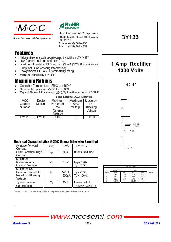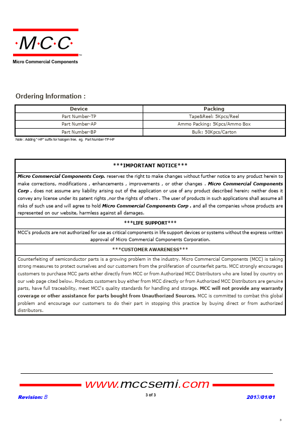 MCC TM Micro Commercial Components Micro Commercial Components 20736 Marilla Street Chatsworth !"# $ % !"#.Features
