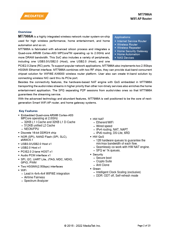 | Part number | MT7986A |