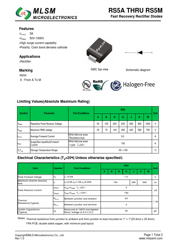 - This datasheet PDF includes multiple part numbers: RS5M, RS5A.