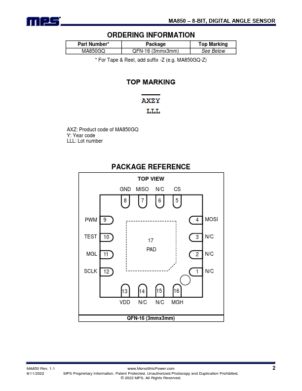 The MA850 is an easy-to-use, magnetic, angle encoder with a digital output designed to replace analogic potentiometers or rotary switches.