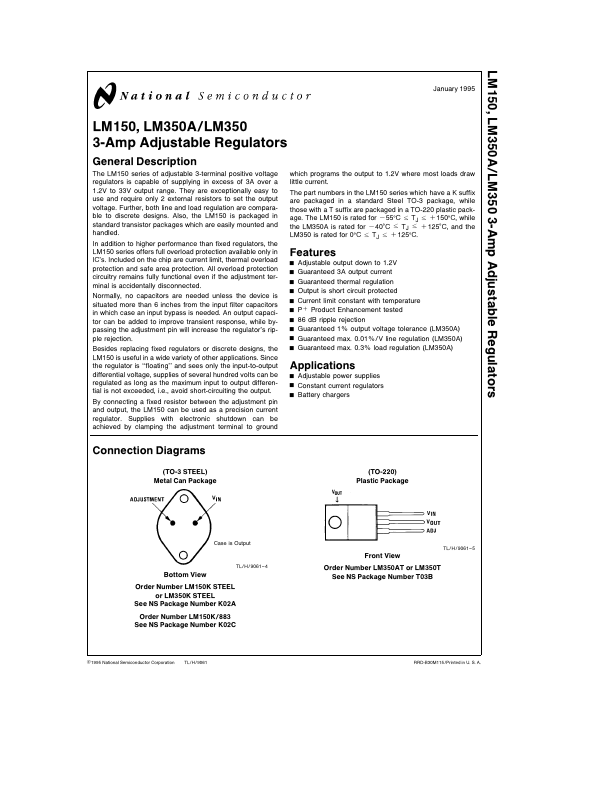 LM150 LM350A LM350 3-Amp Adjustable Regulators January 1995 LM150 LM350A LM350 3-Amp Adjustable Regulators General .