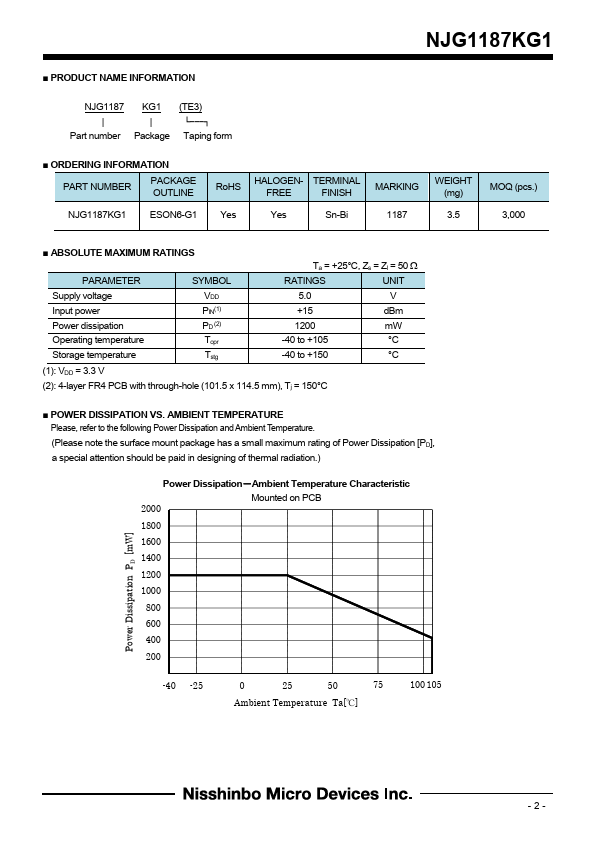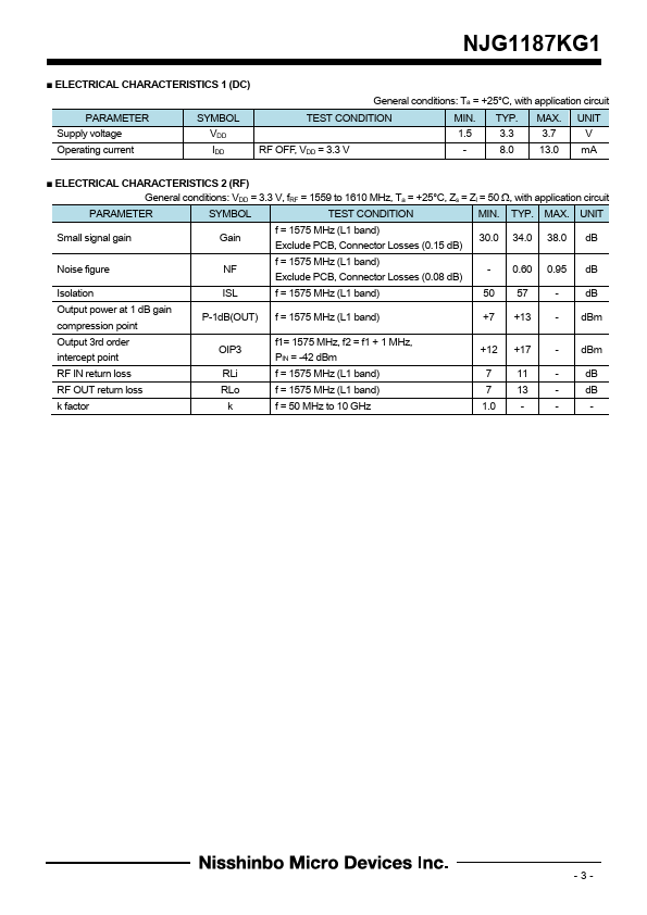 The NJG1187KG1 is a high gain low noise amplifier (LNA) designed for GNSS applications.