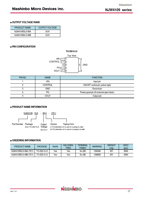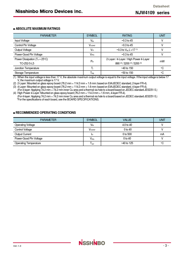 Datasheet NJW4109 45 V, IO = 500 mA LDO WITH POWER-GOOD * .