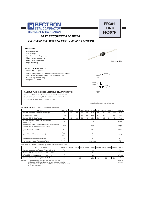- This datasheet PDF includes multiple part numbers: FR307P, FR301.