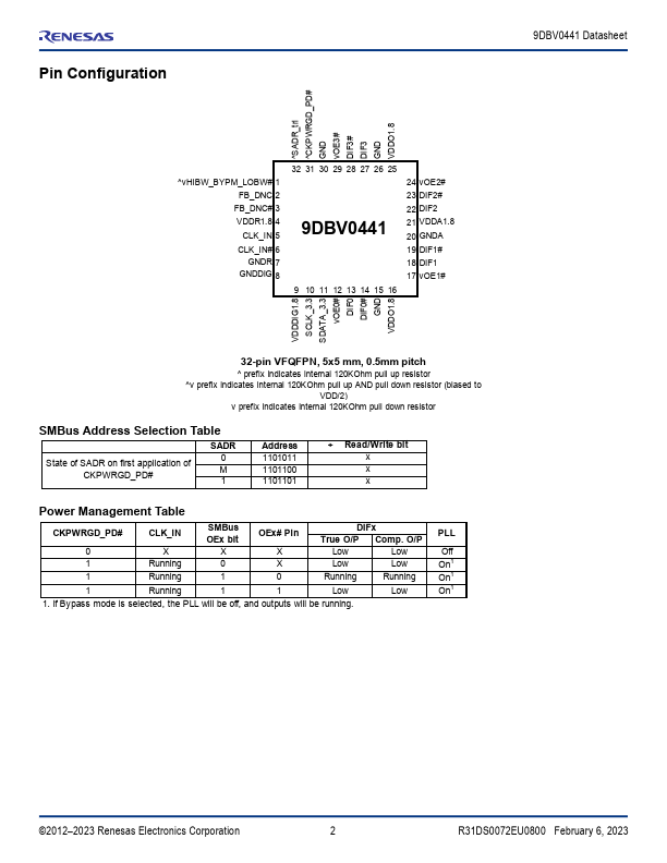The 9DBV0441 is a member of Renesas’ SOC-Friendly 1.8V Very-Low-Power (VLP) PCIe family. 1.8V PCIe Gen1 5 Zero-Delay/Fan-out Buffer (ZDB/FOB) Output