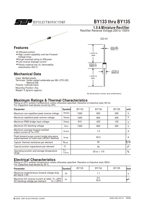 - This datasheet PDF includes multiple part numbers: BY135, BY133.