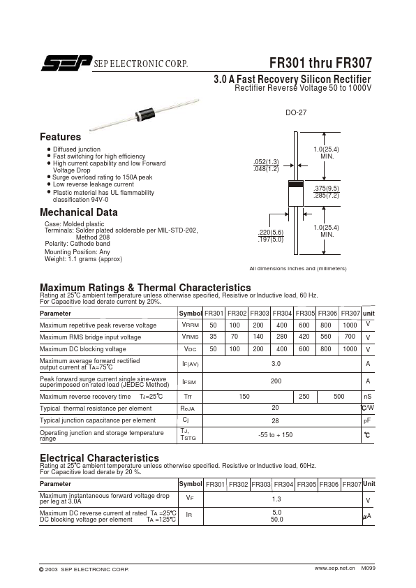 - This datasheet PDF includes multiple part numbers: FR304, FR301.