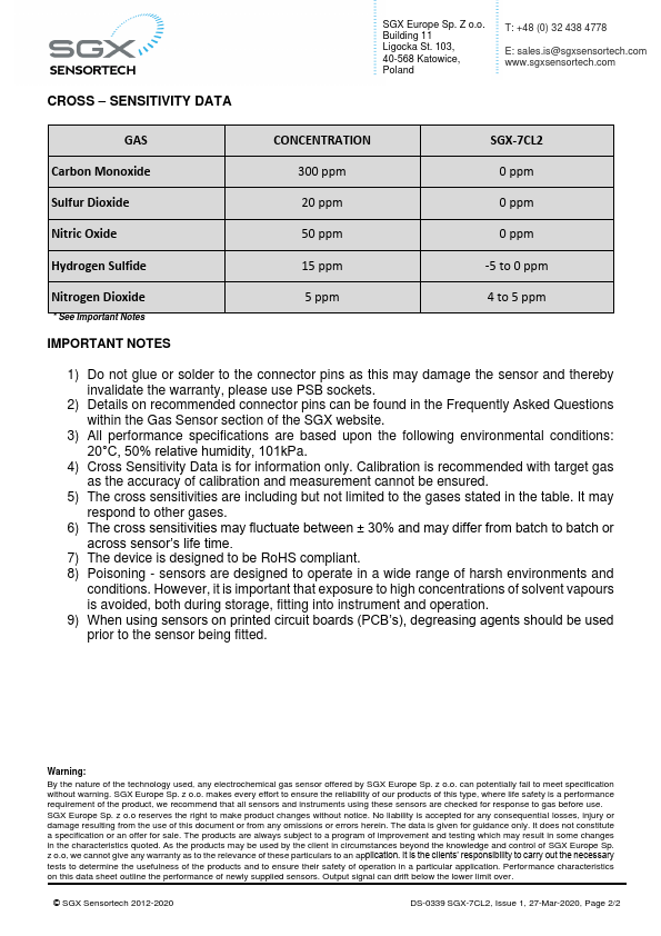 | Part number | SGX-7CL2 |