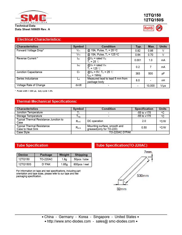 Technical Data Data Sheet N0609 Rev.A 12TQ150/S SCHOTTKY RECTIFIER 12TQ150 12TQ150S .12TQ150 Applications