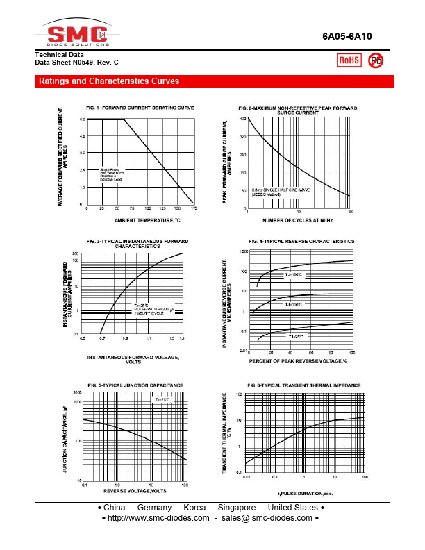 6A05-6A10 Technical Data Data Sheet N0549, Rev.C 6A05 THRU 6A10 GENERAL PURPOSE SILICON RECTIFIER Reverse Voltage - 50 to 1000 Volts Forward Current .Features