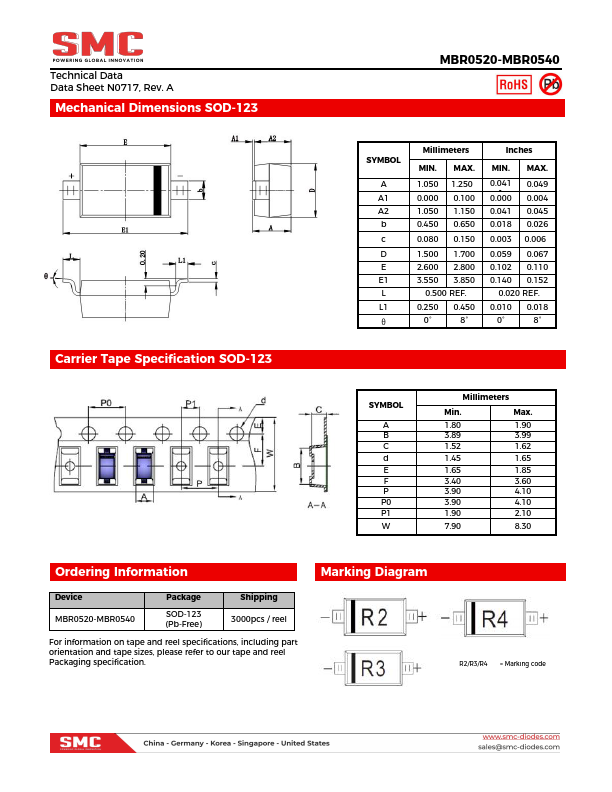 - This datasheet PDF includes multiple part numbers: MBR0530, MBR0520.