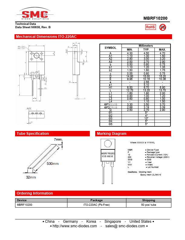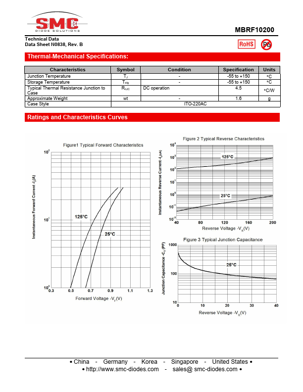 Technical Data Data Sheet N0838, Rev.B MBRF10200 SCHOTTKY RECTIFIER MBRF10200 ITO-220AC .MBRF10200 Features