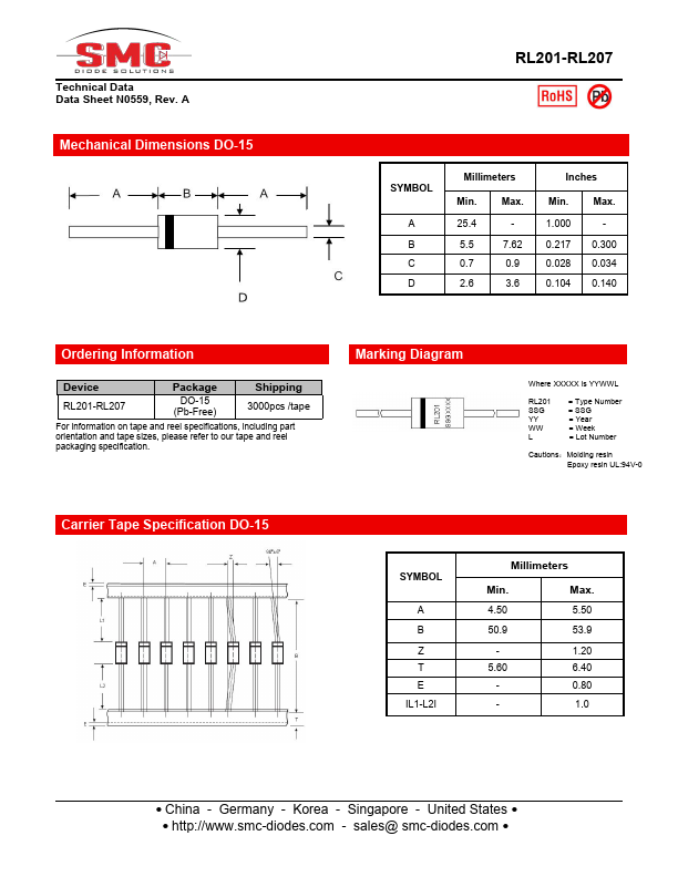 RL201-RL207 Technical Data Data Sheet N0559, Rev.A RL201-RL207 1.0 SILICON RECTIFIERS .