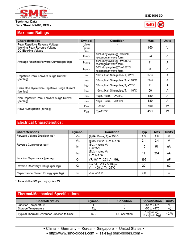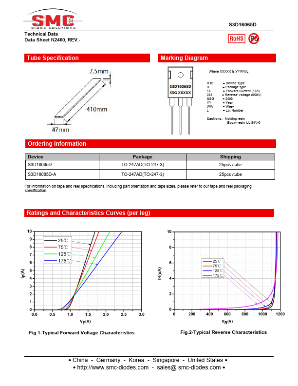 S3D16065D Technical Data Data Sheet N2460, REV.- S3D16065D 650V SIC POWER SCHOTTKY RECTIFIER TO-247AD(TO-247-3) .