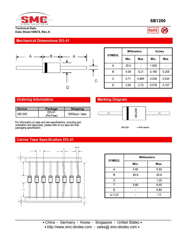 SB1200 Technical Data Data Sheet N0874, Rev.A SB1200 SCHOTTKY RECTIFIER .SB1200 Features