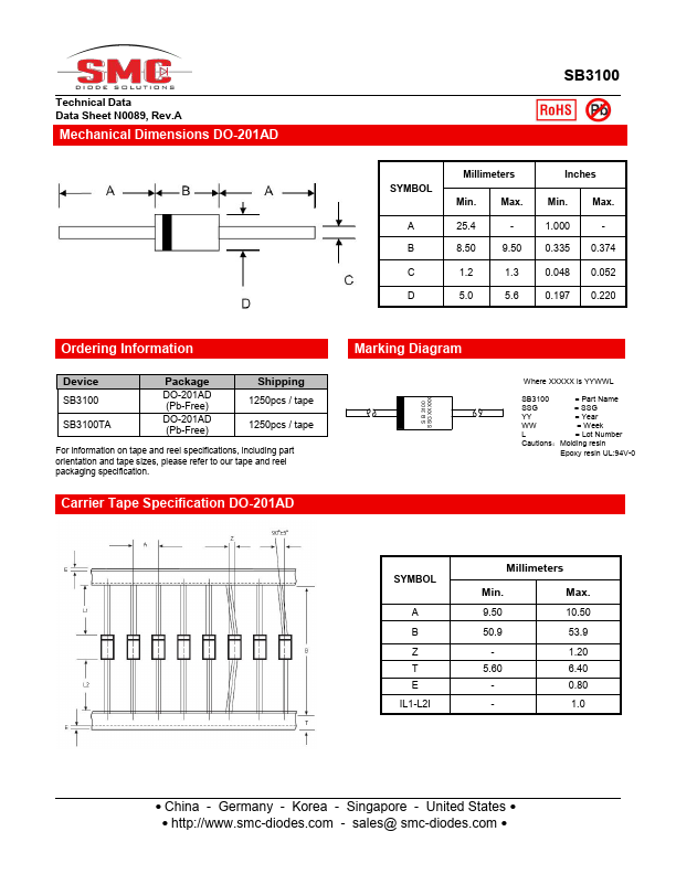 SB3100 Technical Data Data Sheet N0089, Rev.A SB3100 SCHOTTKY RECTIFIER .SB3100 Features