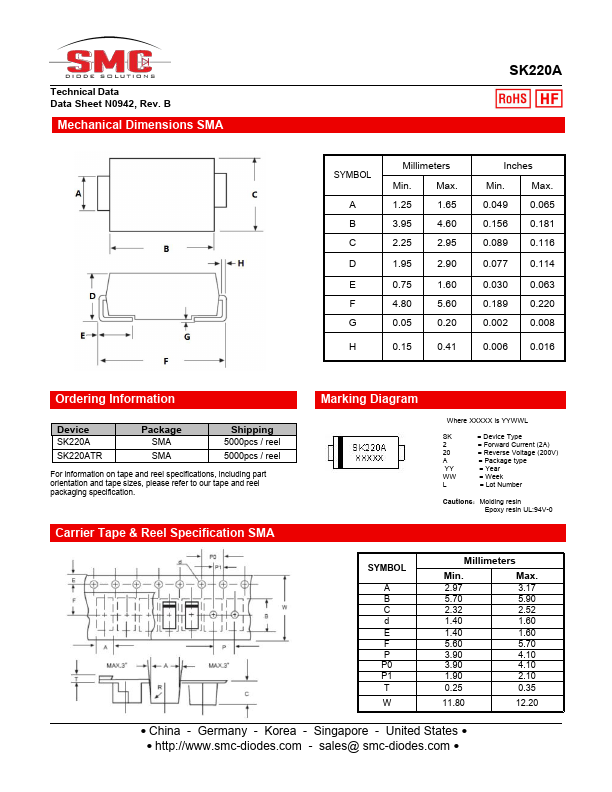 Technical Data Data Sheet N0942, Rev.B SK220A SCHOTTKY RECTIFIER SK220A SMA .SK220A Features