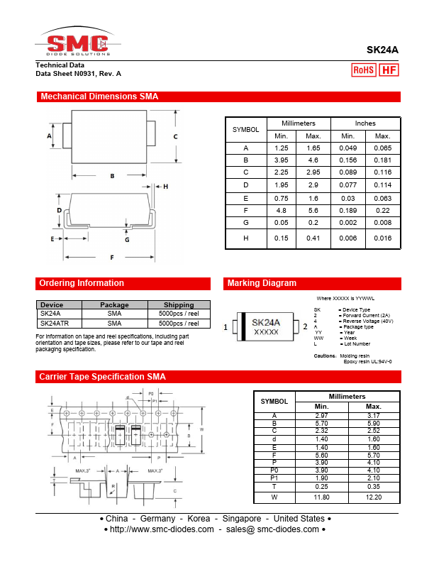 Technical Data Data Sheet N0931, Rev.A SK24A SCHOTTKY RECTIFIER SK24A SMA .