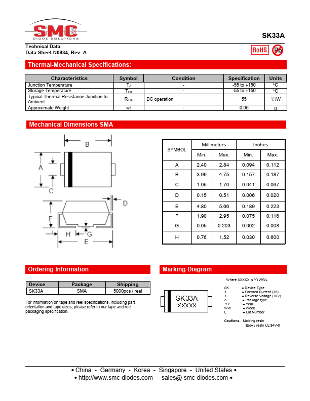 Technical Data Data Sheet N0934, Rev.A SK33A SCHOTTKY RECTIFIER SK33A SMA .SK33A Features