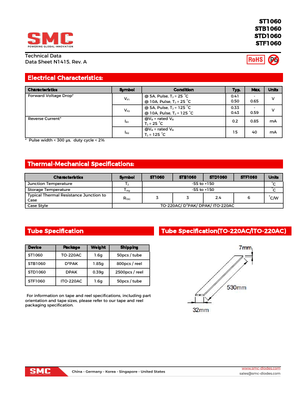 Technical Data Data Sheet N1415, Rev.A ST1060 STB1060 STD1060 STF1060 ST1060/STB1060/STF1060/STD1060 SCHOTTKY RECTIFIER Applications .ST1060 Features