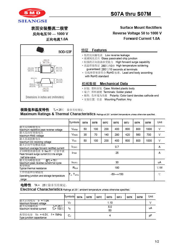 - This datasheet PDF includes multiple part numbers: S07B, S07A.