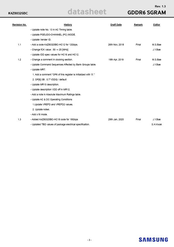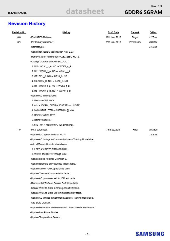 The K4Z80325BC by Samsung is a 8Gb GDDR6 SGRAM. Below is the official datasheet preview.