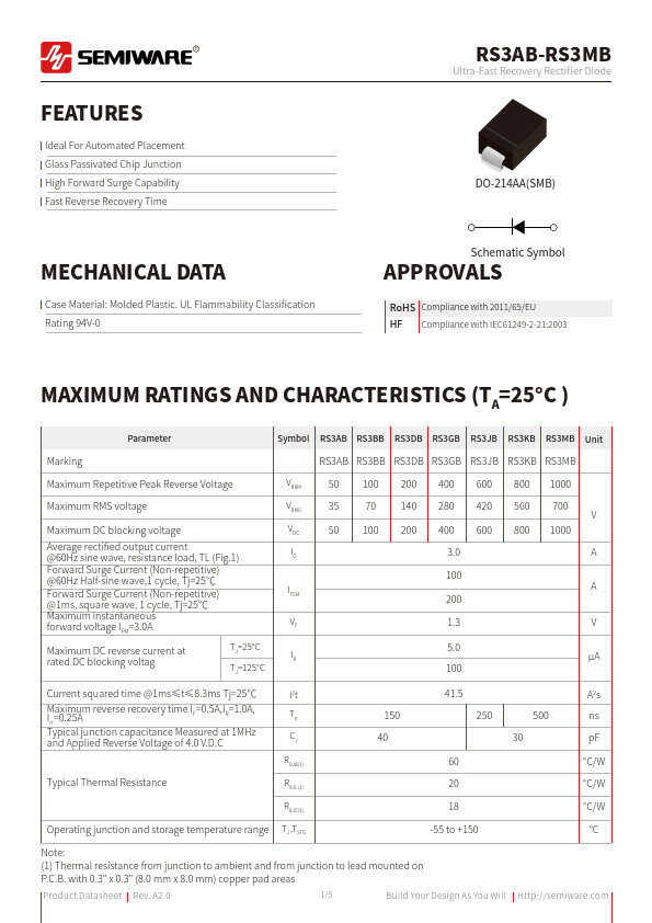 - This datasheet PDF includes multiple part numbers: RS3DB, RS3AB.