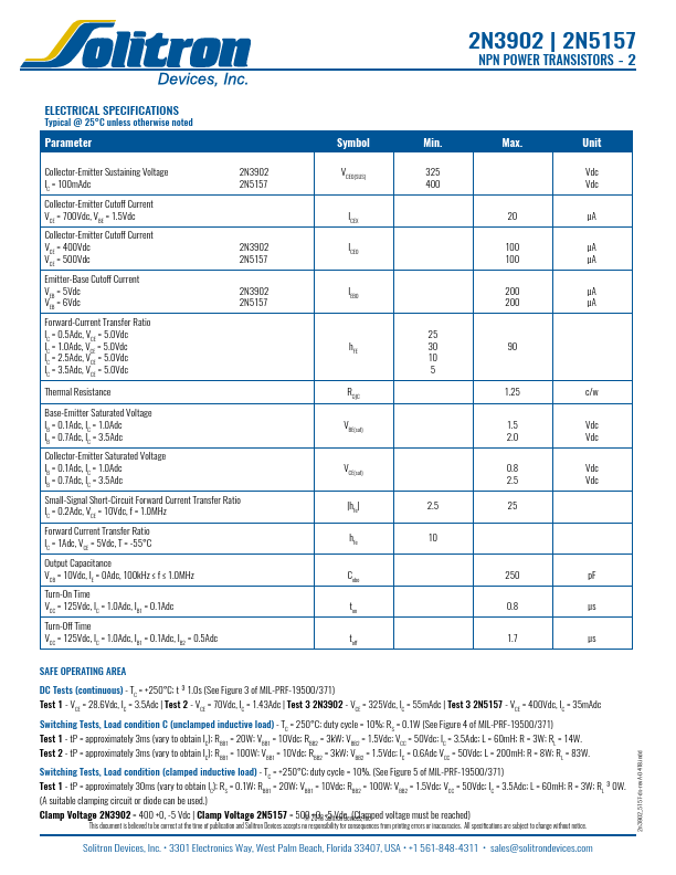 2N3902 | 2N5157 NPN POWER TRANSISTORS - 1 KEY .2N5157 Features