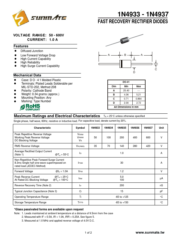- This datasheet PDF includes multiple part numbers: 1N4937, 1N4933.