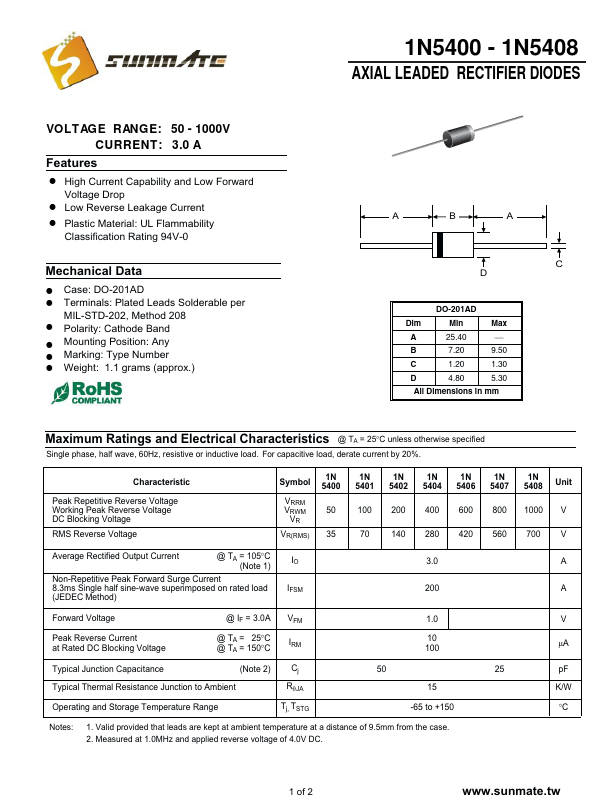 - This datasheet PDF includes multiple part numbers: 1N5407, 1N5400.