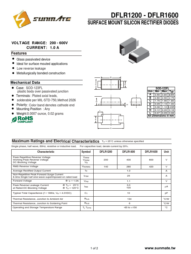 - This datasheet PDF includes multiple part numbers: DFLR1600, DFLR1200.