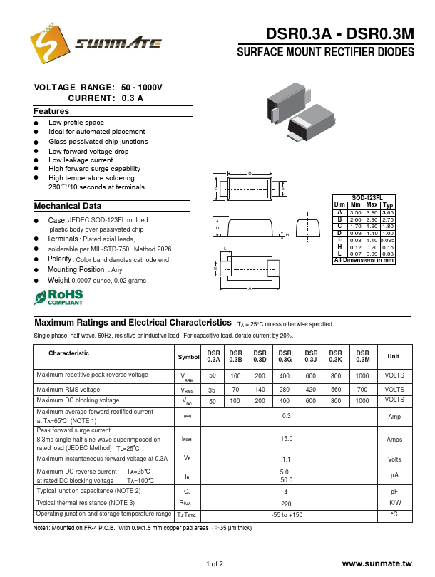 - This datasheet PDF includes multiple part numbers: DSR0.3K, DSR0.3A.