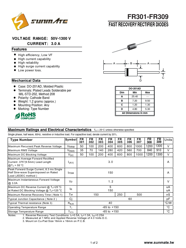 - This datasheet PDF includes multiple part numbers: FR303, FR301.