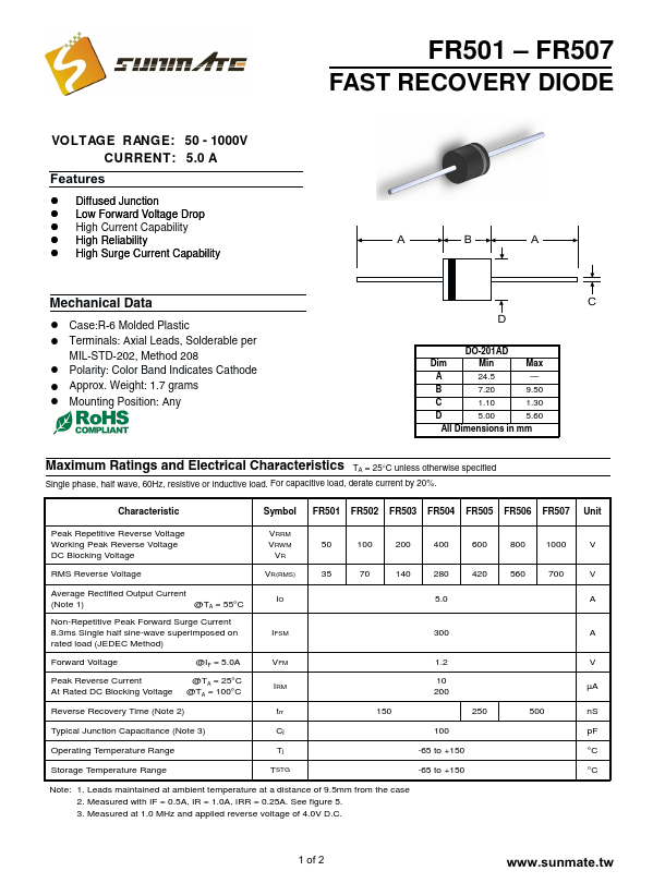 - This datasheet PDF includes multiple part numbers: FR502, FR501.