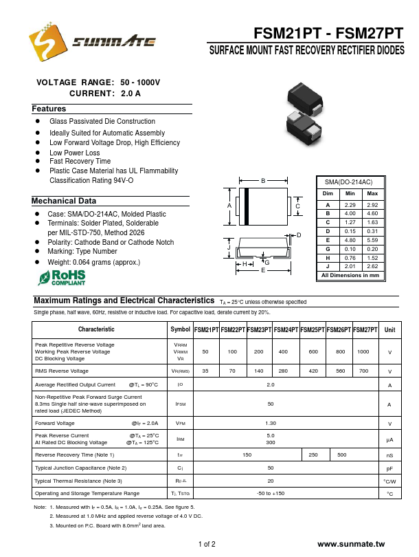 - SURFACE MOUNT FAST RECOVERY RECTIFIER DIODES
