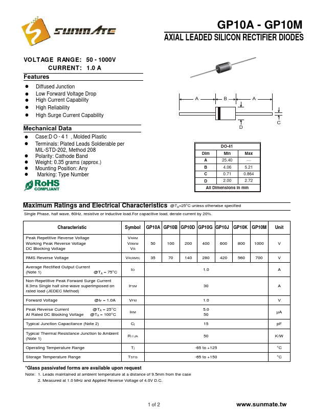 - This datasheet PDF includes multiple part numbers: GP10D, GP10A.