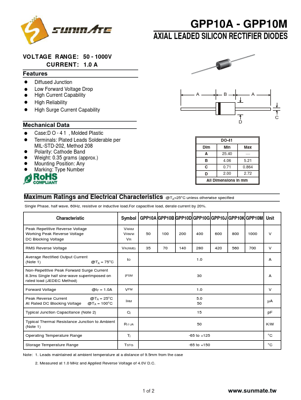 - This datasheet PDF includes multiple part numbers: GPP10D, GPP10A.