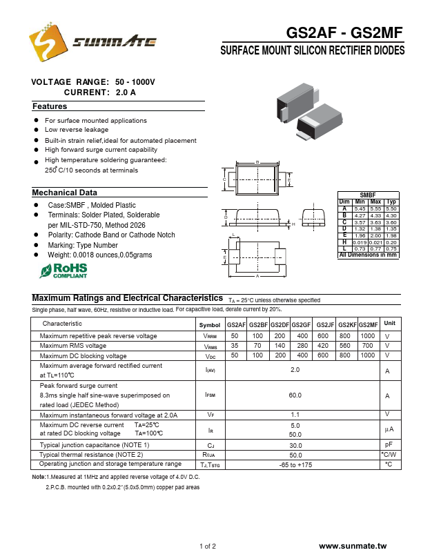 - This datasheet PDF includes multiple part numbers: GS2JF, GS2AF.