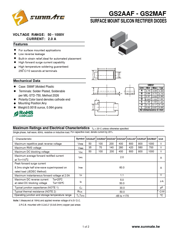- This datasheet PDF includes multiple part numbers: GS2MAF, GS2AAF.