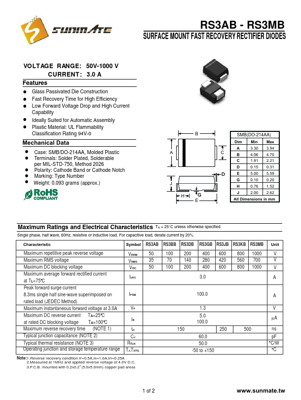 - This datasheet PDF includes multiple part numbers: RS3GB, RS3AB.