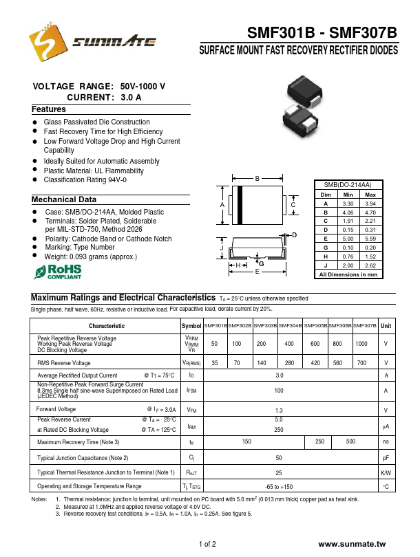 - This datasheet PDF includes multiple part numbers: SMF303B, SMF301B.