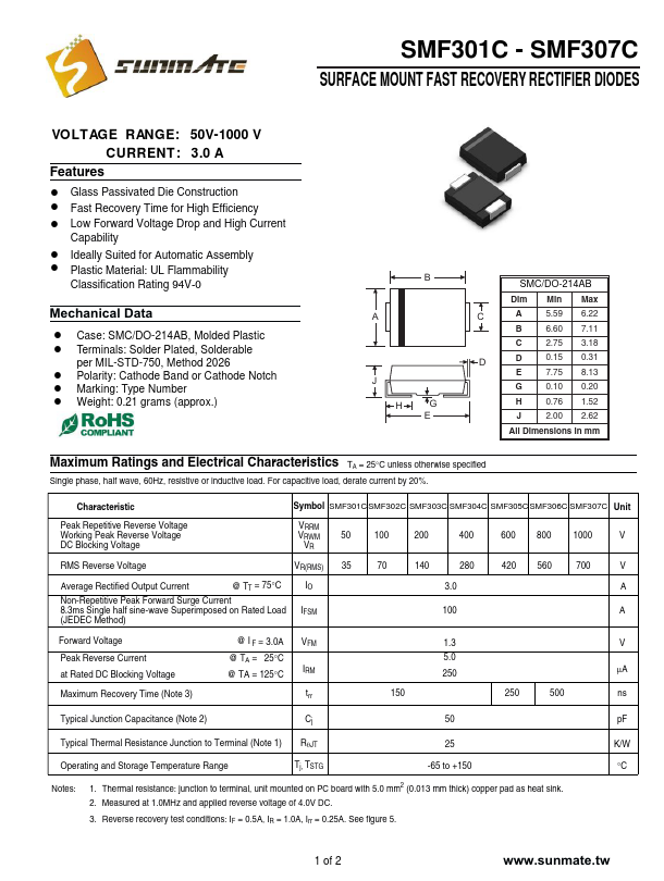 - This datasheet PDF includes multiple part numbers: SMF306C, SMF301C.