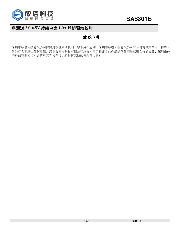 - SA8301 - 2.0 ~ 7.0V 1.8A Single-Channel H-Bridge Driver (RBX)