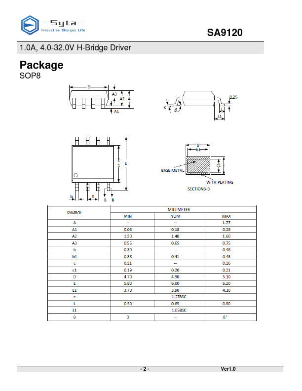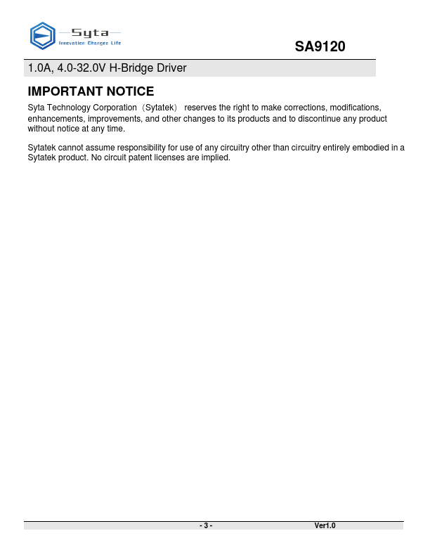 The SA9120 is single channel H-Bridge driver IC with integrated diodes for motor application, it provides integrated motor-driver solution for robotics, consumer products and other low voltage or battery-powered motion control applications.