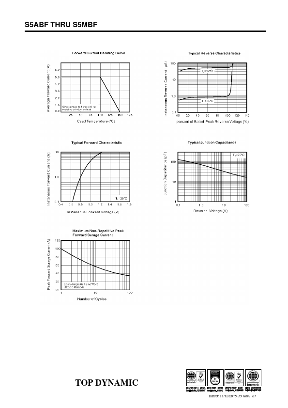 S5ABF THRU S5MBF Surface Mount General Purpose Silicon Rectifiers Reverse Voltage * 50 to 1000 V Forward Current * 5 A SMBF .Features