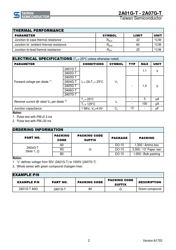 Taiwan Semiconductor 2A04G-T-like datasheet